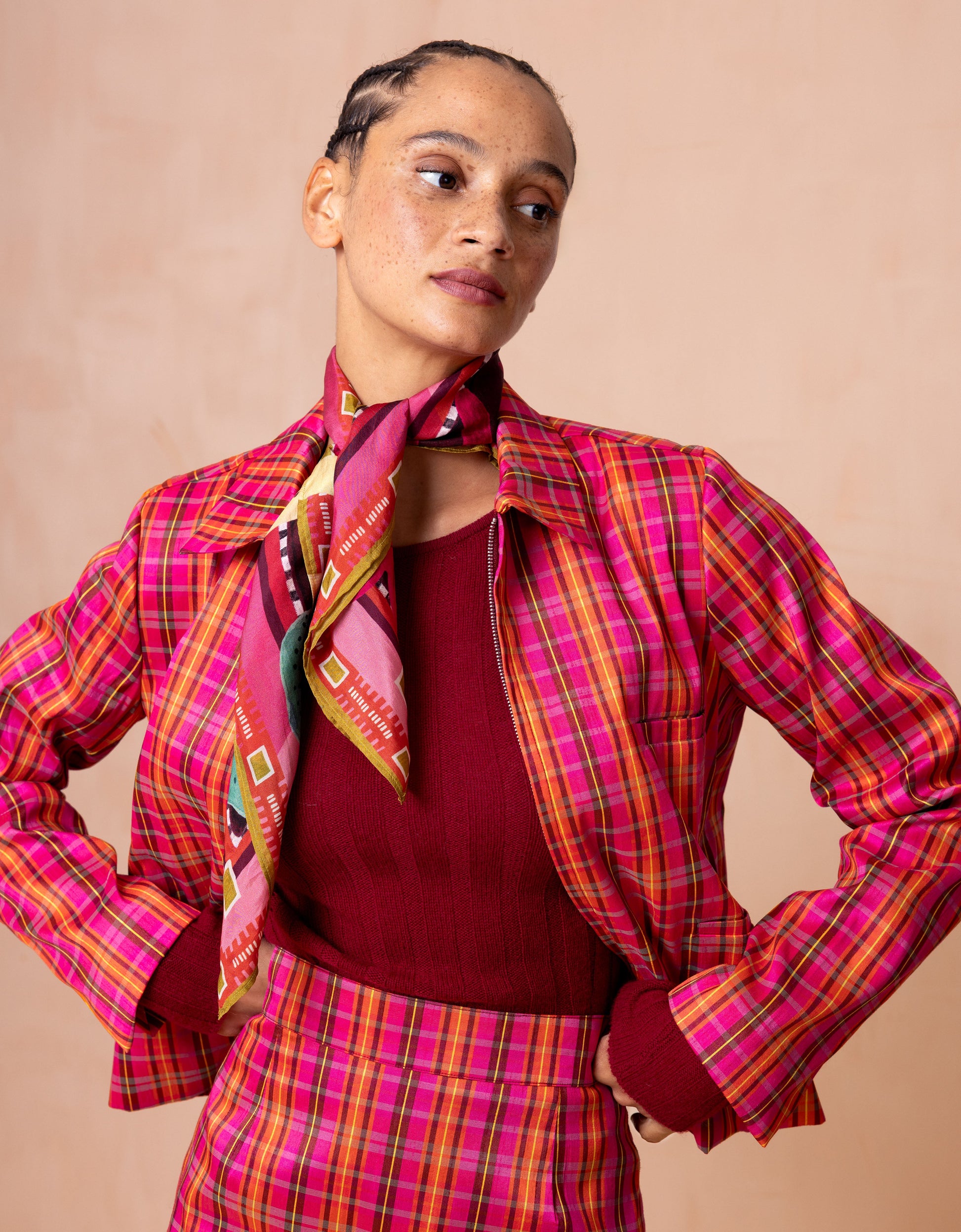 Print Schokland Treasures vertelt een verhaal waarbij de grenzen tussen land en zee vervagen, waar folklore en mythologie samenkomen. Het is een ode aan de rijke historie en natuur van Schokland en Schotland geprint op een zijden sjaal die je op veel verschillende manieren kan knopen om je hals, hoofd, haar of tas.