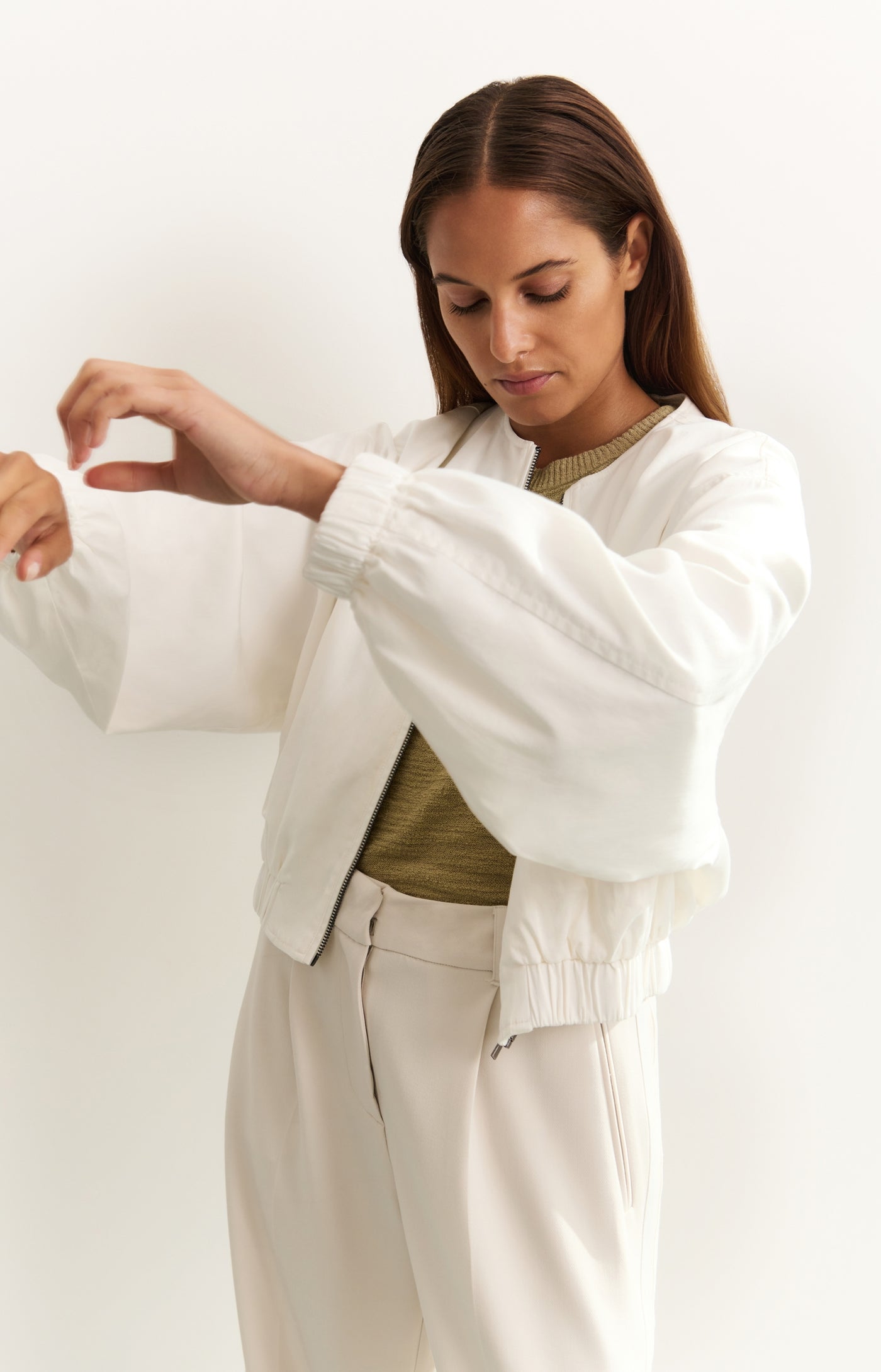 Dit stijlvolle bomberjack heeft een korte, normale pasvorm en is gemaakt van een luchtige geweven stof. Het ontwerp is voorzien van een ritssluiting, een ronde hals en elastische boorden voor een subtiele sportieve touch. Een veelzijdig item dat moeiteloos kan worden gestyled voor een casual of chique look.