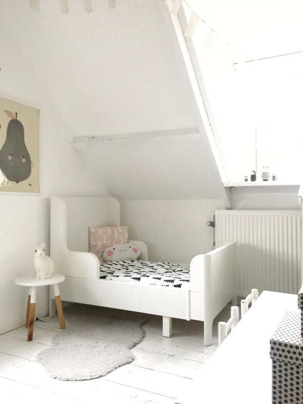 Ledikant dekbed overtrek Gran van Fine Little Day. Wordt geleverd in een bijpassend zakje met groen lint.