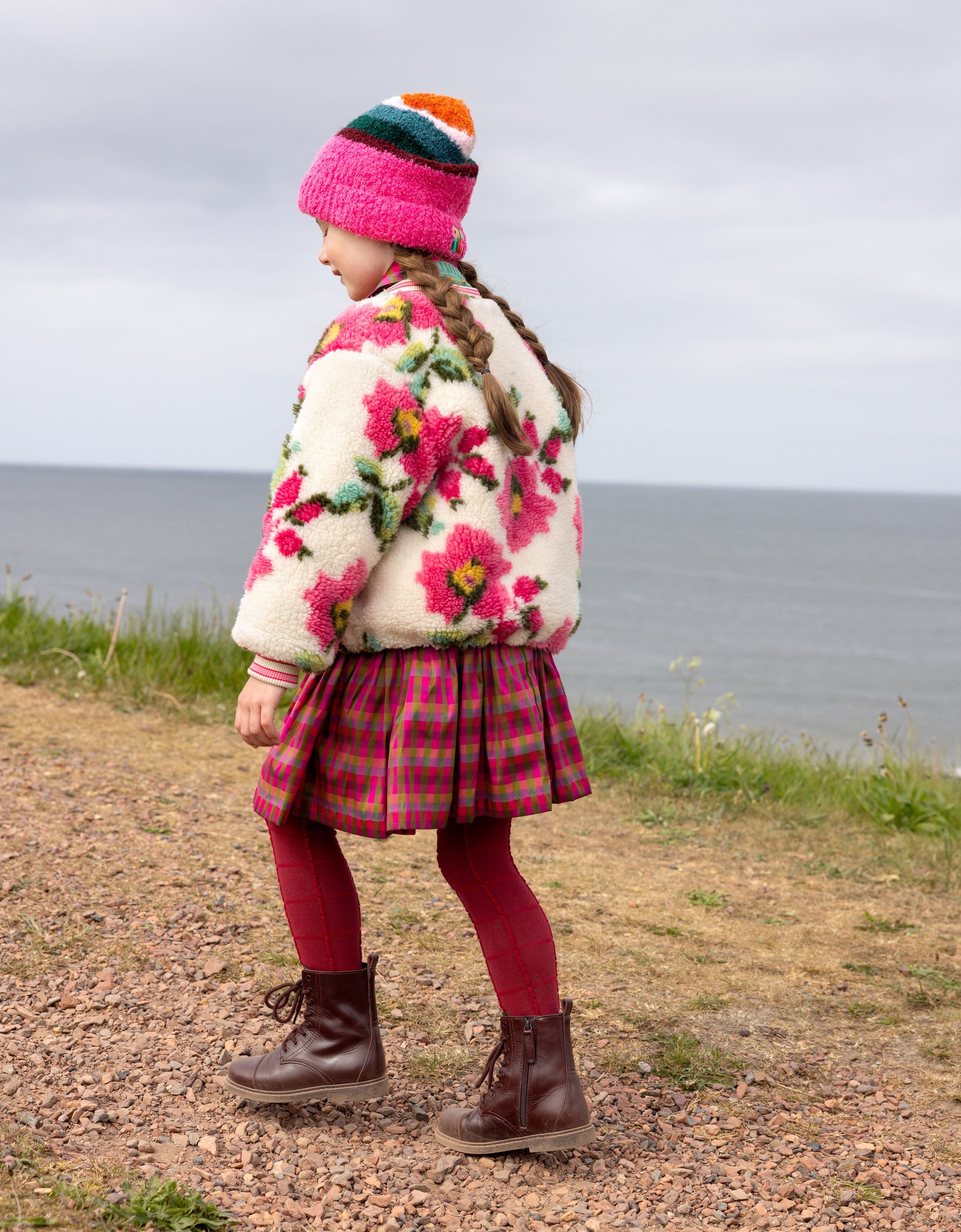 Maillot met mooie, diepe kleuren die overal goed bij kunnen passen en neonroze accenten bij de tenen en hiel.