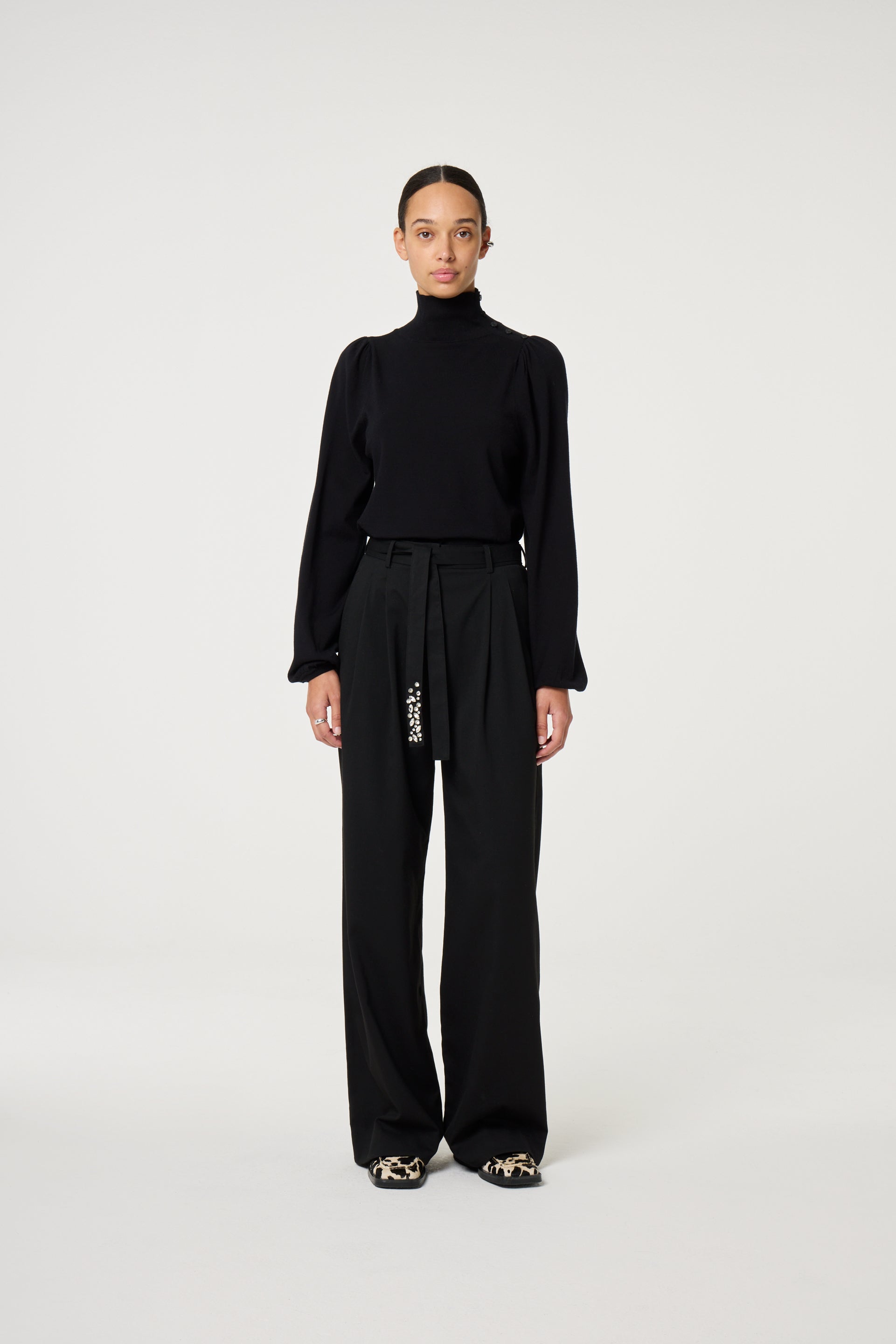 Deze zwarte pullover is een lichte knit, ideaal om te layeren op frisse herfstdagen. Hij valt soepel, behoudt zijn vorm en heeft een ontspannen pasvorm. Mooi te combineren met jeans of een rok voor een casual maar verzorgde look.