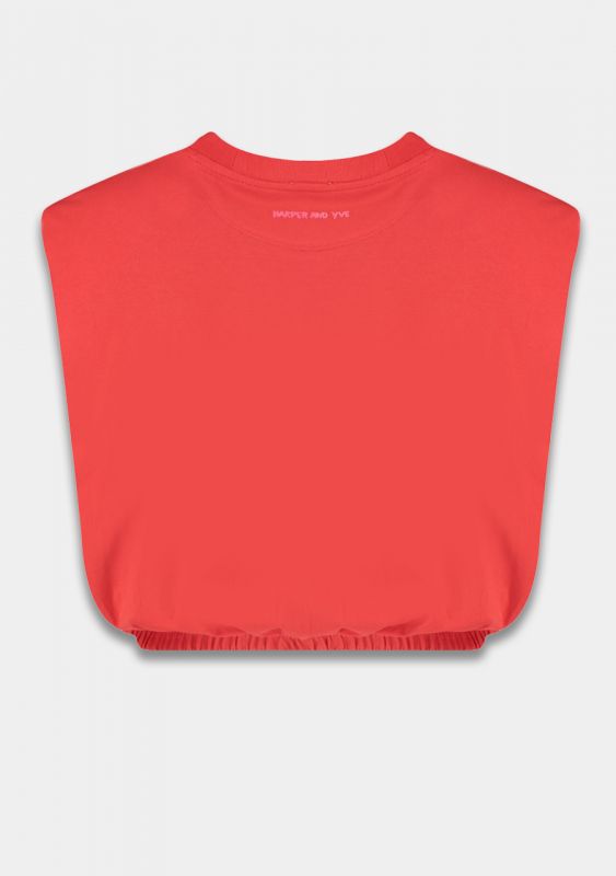 Ready to power up your look? The MUSCLE top is a bold and playful essential that brings an instant statement to your summer wardrobe. Met zijn felrode kleur, elastische taille en opvallende bloemprint met het Harper and Yve logo, straalt deze top pure energie en zelfvertrouwen uit. De boxy pasvorm zonder mouwen en met schouderaccenten geeft het een stoer silhouet, perfect voor een casual maar edgy stijl. Combineer met een denim short of een flowy rok voor een dynamische look. Let your outfit do the talking!