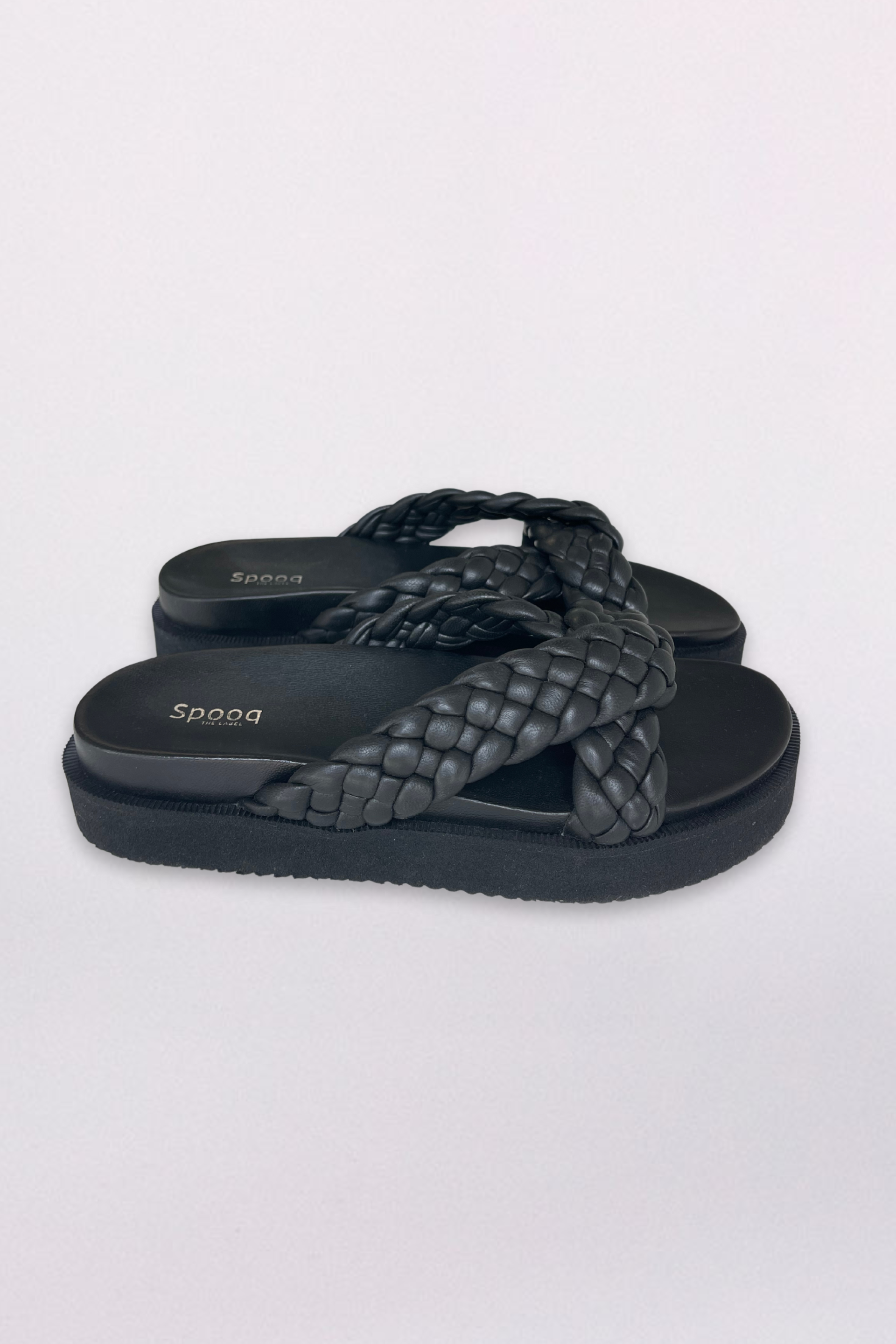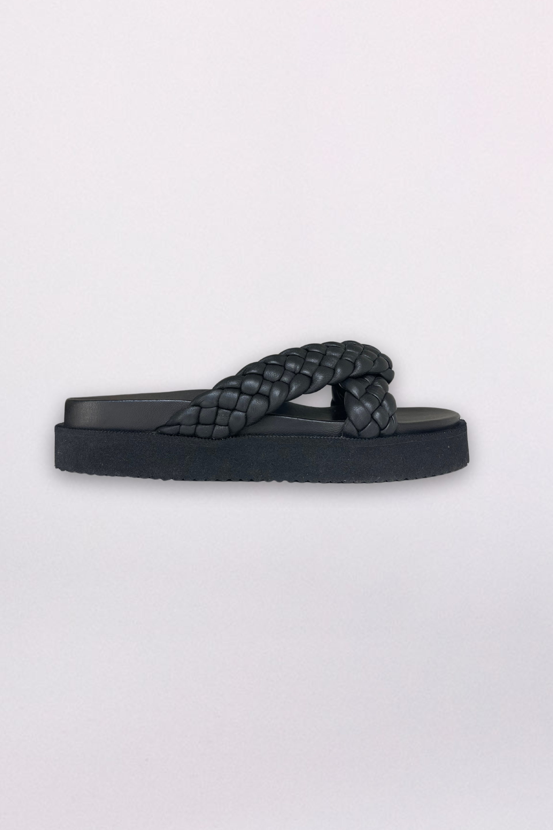 Stap in stijl met de ‘Sandal | Black’. Deze slippers met gevlochten banden aan de bovenzijde zijn perfect voor een dagje strand of een zomerse wandeling door de stad. Combineer ze met een luchtige zomerjurk of een trendy jumpsuit voor een casual en trendy look. Laat je voeten stralen met de ‘Sandal | Black’ en geniet van het comfort en de stijl die ze bieden.