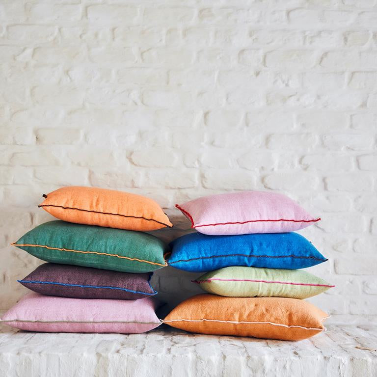 Vrolijk je bank of fauteuil op met dit kleurrijke sierkussen van HKliving. Hij is gemaakt van zacht linnen met katoen en heeft een contrast dankzij het gekleurde randje, hip! Uitermate geschikt om op de lange luieravondjes lekker tegenaan te kruipen.