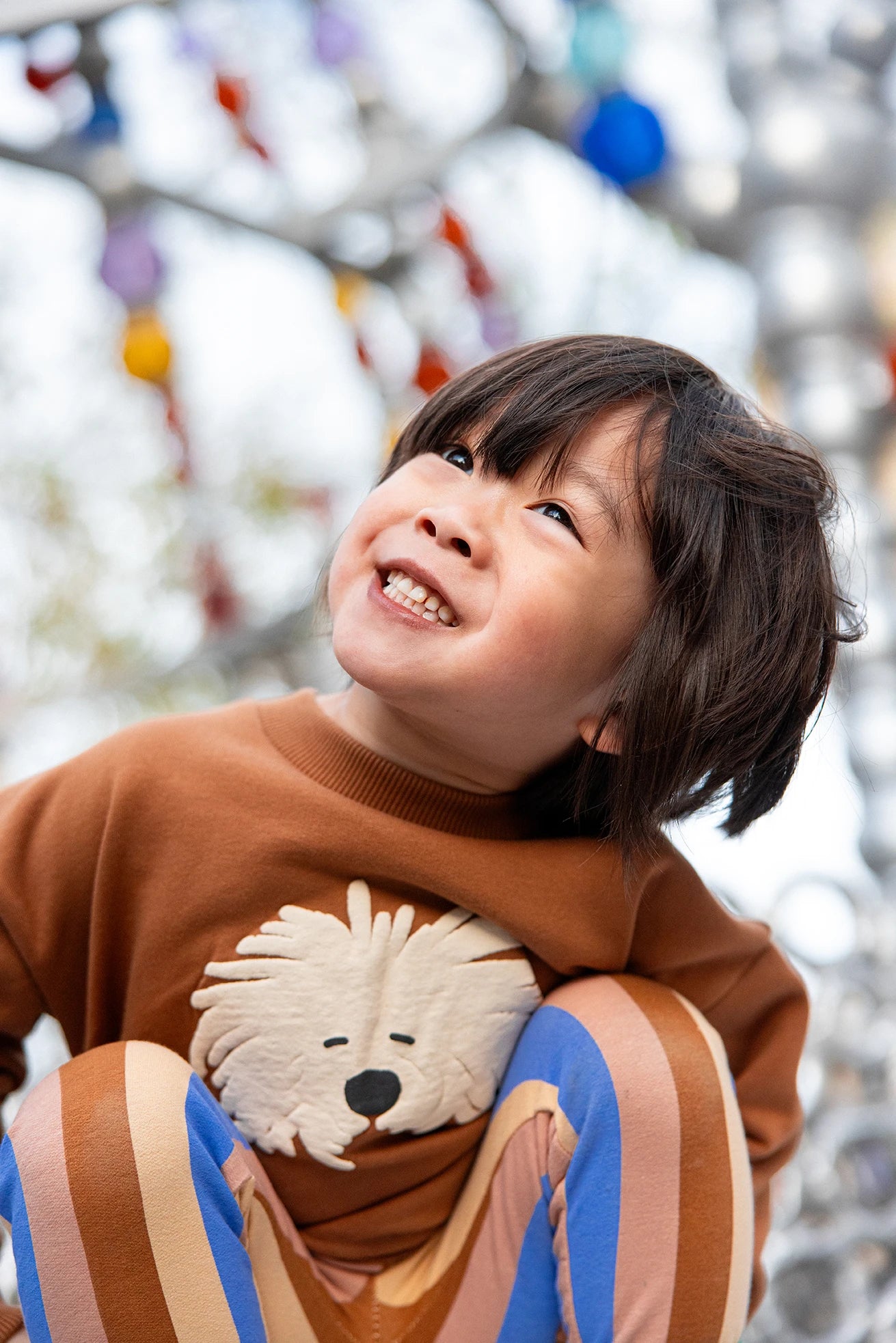 Mocca sweatshirt gemaakt van geborsteld katoen met een moustache dog print.