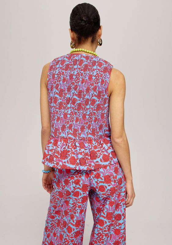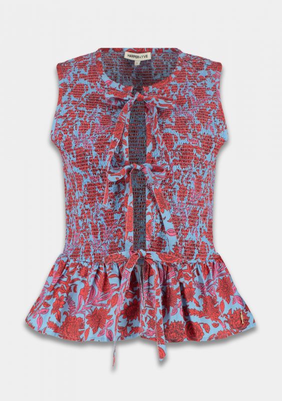 This ones a real showstopper! De CINDY top is een eyecatcher met een kleurrijke print, striksluiting en speelse peplumrand. De gesmokte stof zorgt voor een comfortabele en aansluitende fit die zich perfect vormt naar je lichaam. Door de open voorkant met strikken geef je jouw outfit een luchtige en vrouwelijke touch. Combineer 'm met de bijpassende ROSIE pants voor een full-on floral look die perfect is voor zonnige dagen of een feestje in tropische sferen. Pair it with confidence!