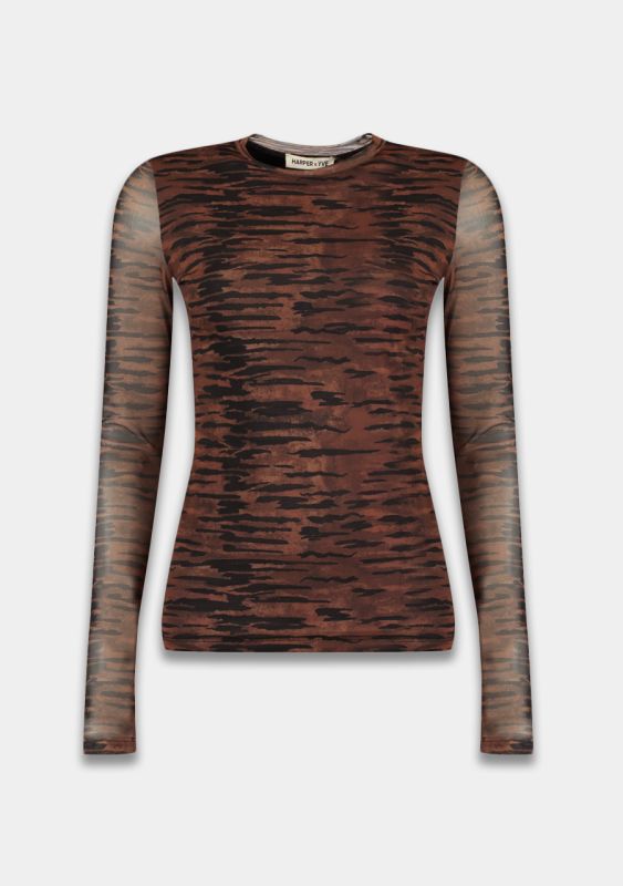 Stay bold, stay wild. De JUNE longsleeve is de combinatie van comfort en karakter. Met de uitgesproken Trashy Tiger Warm print geef je elke outfit direct een boost. De zachte stof voelt fijn aan op de huid, terwijl de getailleerde fit zorgt voor een vrouwelijke look. Unleash your wild side.