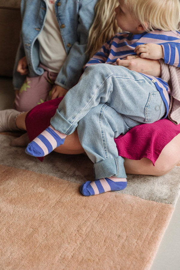 Deze TNC sokken maken elke outfit helemaal af. De speelse blauw-roze strepen en het subtiele TNC-logo zorgen voor een vrolijke, herkenbare look die perfect aansluit bij de rest van de collectie. Comfortabel én stijlvol – precies wat kids nodig hebben.